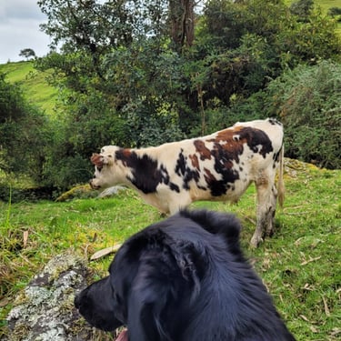 En este punto, nosotros dejamos a Beka en total libertad. Sin embargo, si tu perro tiene el instinto de corretear vacas o caballos, es mejor que lo lleves con correa, ya que hay animales de campesinos pastando cerca al camino.